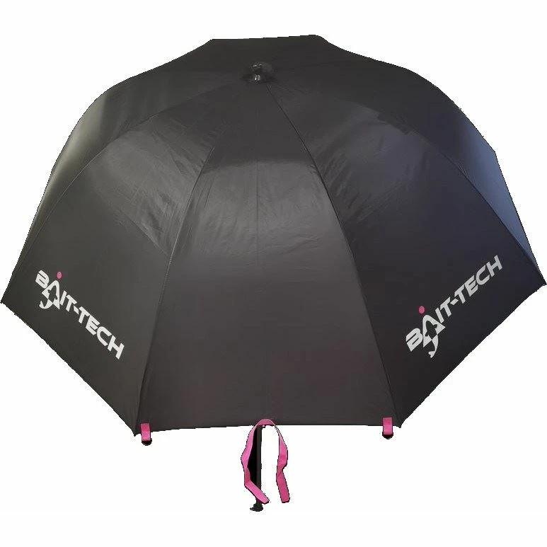 A lightweight dark black umbrella sporting the Bait Tech logo and most attractive pink highlighting. With pegging points so you can secure them in bad weather.