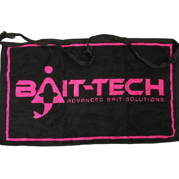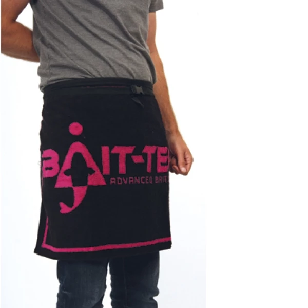 Essential for cleaning muck. groundbait and fish slime off your hands while you’re building up a weight. Can also be worn around the waist with a belt and clip along one-side, making a very appealing skirt that will attract both fish and admiring glances from other anglers. They will marvel at the subtle dayglo pink company logo on a black background, and be all round impressed with your fashion prowess. Â