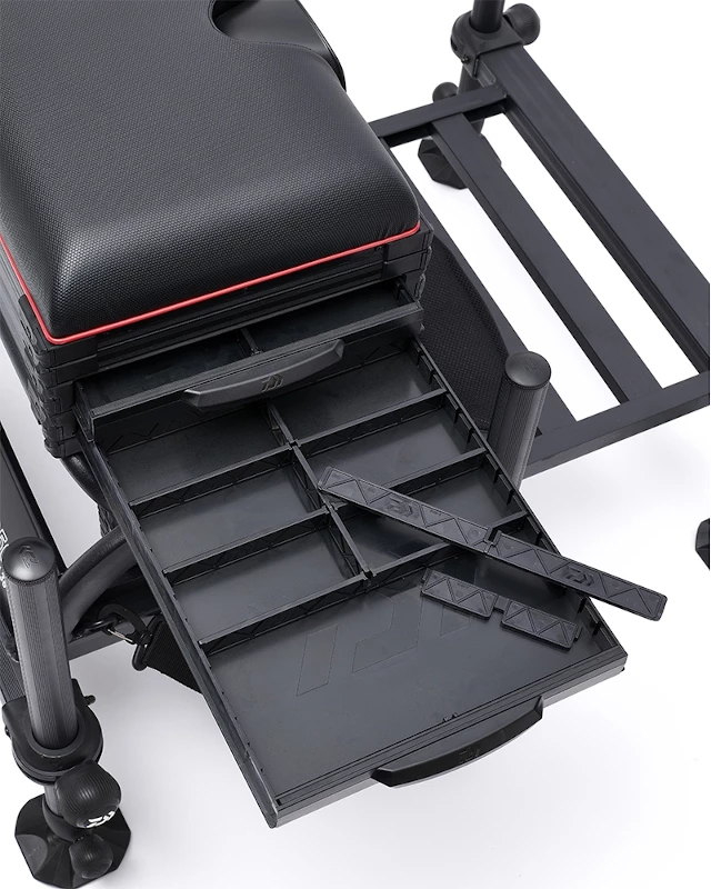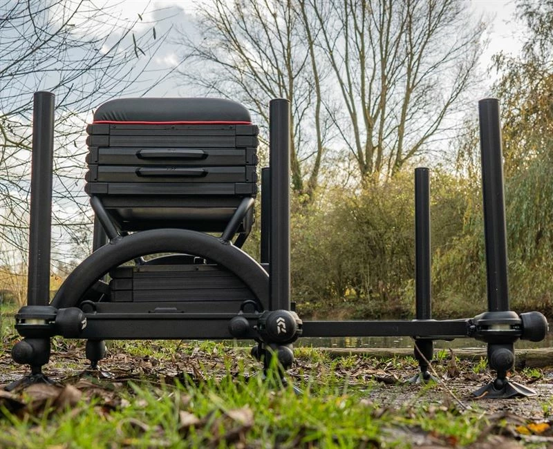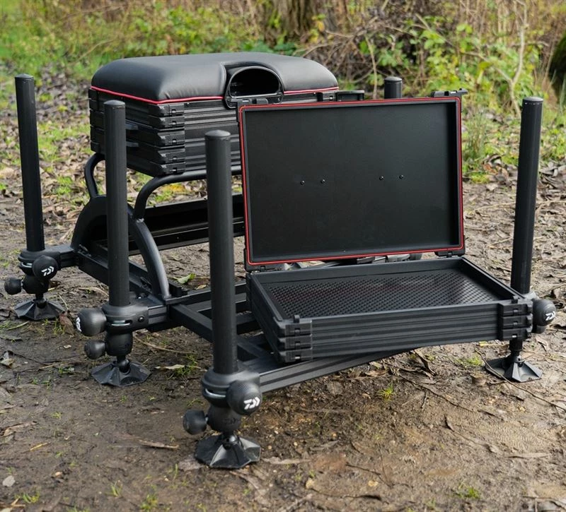 A strong lightweight aluminium and steel construction with a versatile stacking system you can remove, add and configure to your own needs with simple click to fit functionality! With 6 locking 36mm telescopic legs and fully compatible with the System 36 accessory range, so you can add a whole array of attachments and adapters to suit your fishing needs. Topped with a generously padded comfy pole seat and finished with red trim.