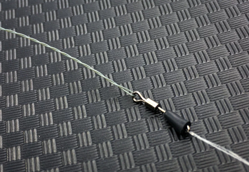 A brilliantly simple idea for keeping you rigs twist and tangle free. One end features an open eye with a small plastic sleeve that slides over to close the loop.