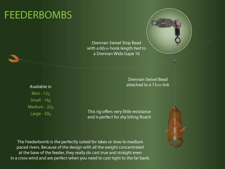- These Feederbombs from Drennan have a shaped lead fitted in the bottom which makes them incredibly aerodynamic.