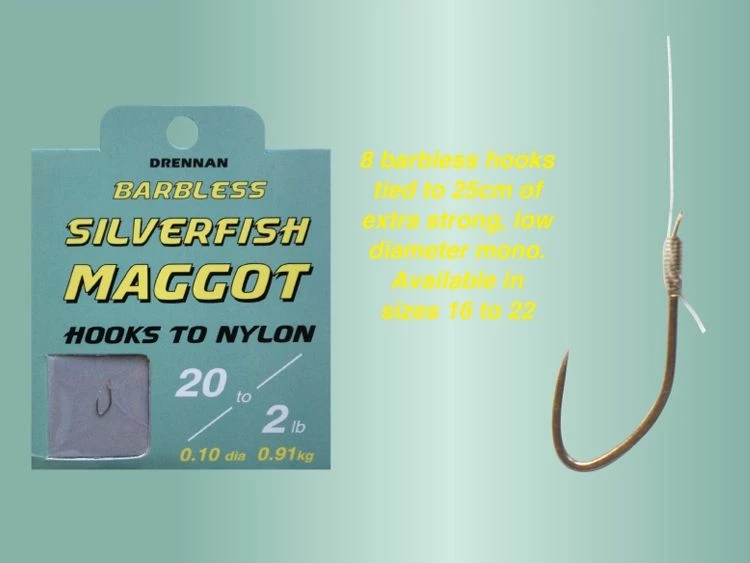 Drennan Hooks To Nylon Barbless Silverfish Maggot –