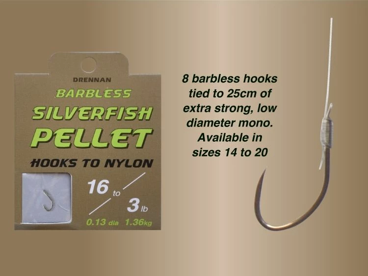 Drennan Hooks To Nylon Barbless Silverfish Pellet –
