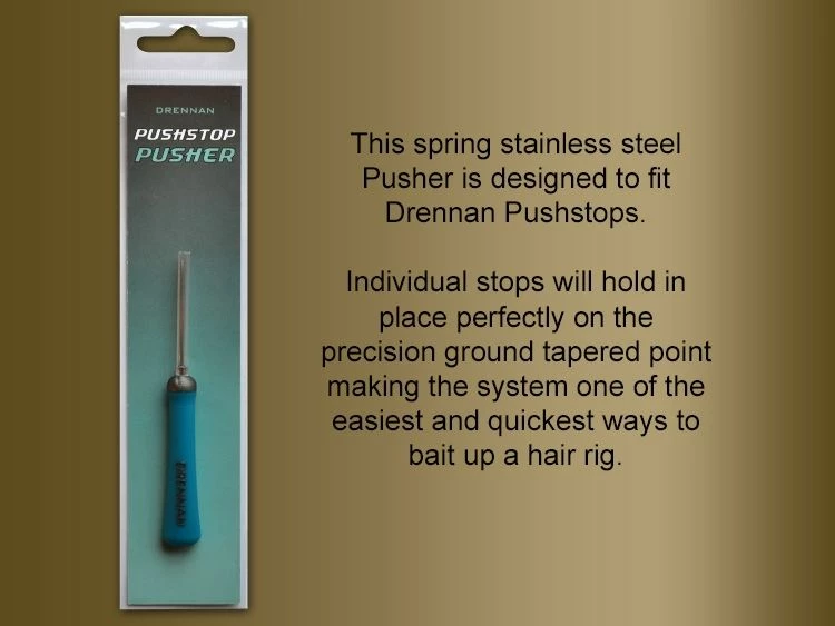 - This spring stainless steel pusher is designed to fit Drennan Quickstops. Individual stops will hold in place perfectly on the precision ground tapered point making the system one of the easiest and quickest ways to bait up a hair rig.