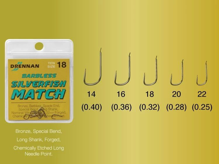 Drennan Silverfish Match Barbless Spade Hooks –