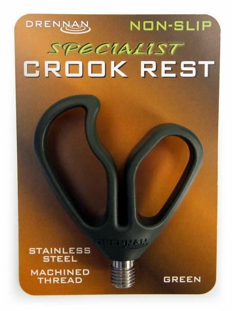 - The crook model is designed as the strike should always be made ‘up and away’ from the raised side. Smooth contours and an extra deep slot help to reduce the chances of getting the line accidentally trapped. This deep slot is also ideal for touch legering, as it allows the line to run freely right through to the rod tip while the rod is still in the rest. A high quality stainless steel screw fitting, machined in our UK factories, completes this excellent rod rest head. Available in a choice of black or green.