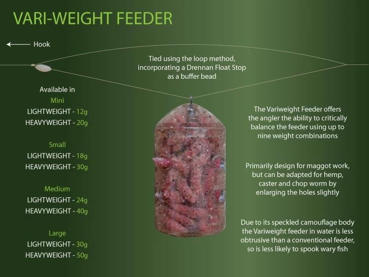 - Although they are excellent on stillwaters, Vari-Weights are designed primarily for the river angler who needs to make small adjustments to the weight loading in order to get the feeder fishing perfectly.