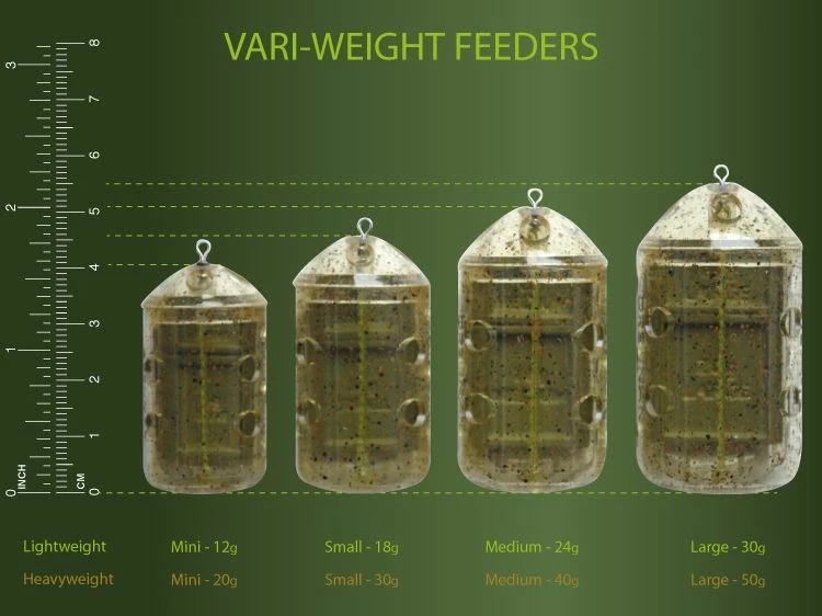 - With just one light and one heavy Vari-Weight feeder nine different weight combinations are available.