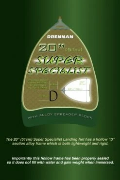 - Constructed from a ‘D’ section high grade aluminium frame the Specialist net is rigid and spoon shaped for ease of use in both still and running waters.