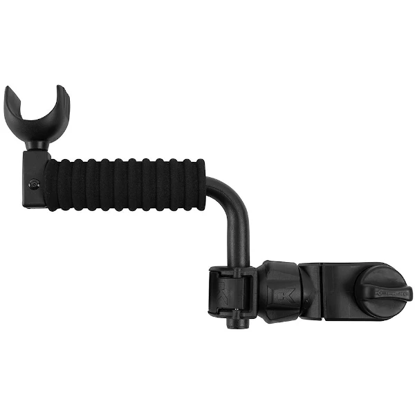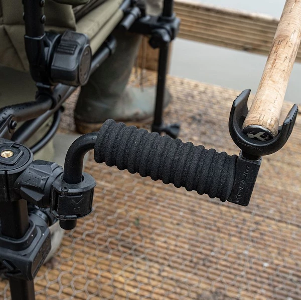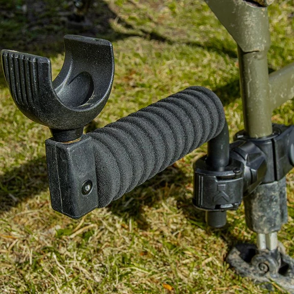 Cupped holder for the base of your rod that will comfortably hold it in place, whether you’re fishing horizontally or with your tips in the air. Quick and easy to attach to a range of seating, from this and other manufacturers. They come supplied with a range of inserts to cover different sized and shaped leg systems. The secure knuckle that claps to your chair has a handy tilt mechanism so you can adjust the angle for a perfect fit.Â