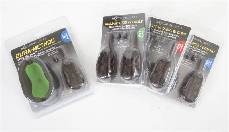 - Korum Dura-Method Feeders provide a super strong feeder that ensures all your bait gets to the lakebed thanks to its unique design and structure. The dedicated mould gives a tapered shape to your bait for increased casting distances. The pack comes complete with a 30g feeder, mould and Quick Change Beads.