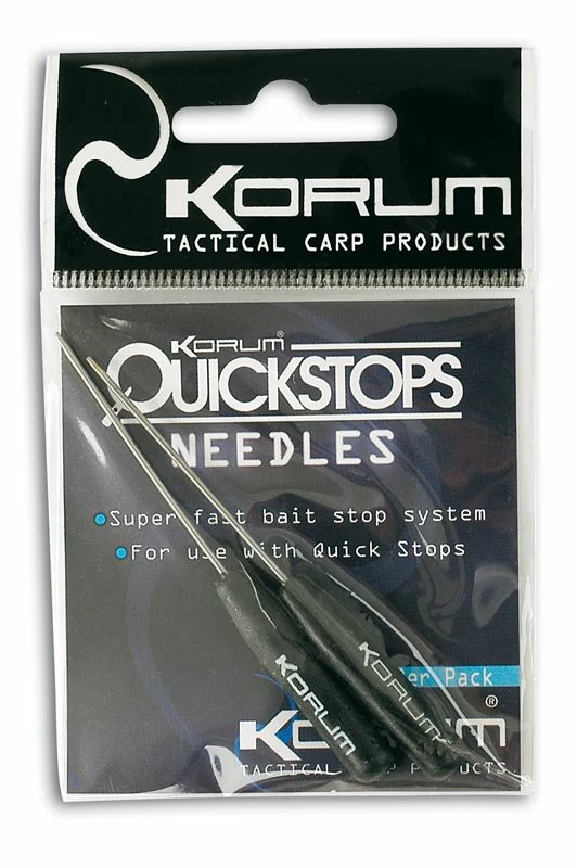 - The Korum Quickstop Needle is designed to be used with Quickstops. You insert the needle directly into the Quickstop and then push it through the bait before removing to leave the Quickstop in place.