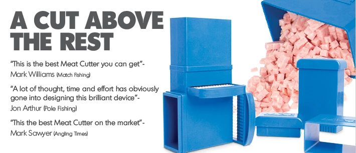 - Possibly the best meat cutter on the market! The MAP meat cutter has been designed to cut different sizes of meat instead of the need of purchasing extra Meat Cutters. Unlike other meat cutters on the market, the MAP meat cutter allows you to interchange the cutting blades, so you can produce different sizes of meat to suit the species and venues you fish. The unique inter-changeable blades are made from strong stainless steel, and unlike wire cutters are almost impossible to break. There are four different sizes of blades available 4mm, 6mm, 8mm and 10mm. Produced from an ultra strong ABS plastic, the cutter also features clever interchangeable plunger heads to match the different size of blades.