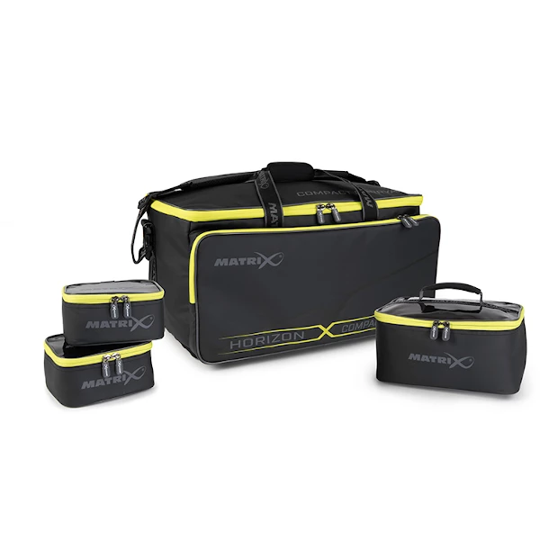 A compact carryall system that comes complete with two small, and one medium storage cases. With enough room to house all three in the main compartment, and take your bait tubs, seatbox accessories rod rest heads as well. Manufactured from the same supertough PVC coated material as the rest of the Horizon range. They also have a reinforced moulded EVA waterproof base that helps the bag hold its shape. With one additional outer zipped compartment designed to house some hooklength boxes. Â
