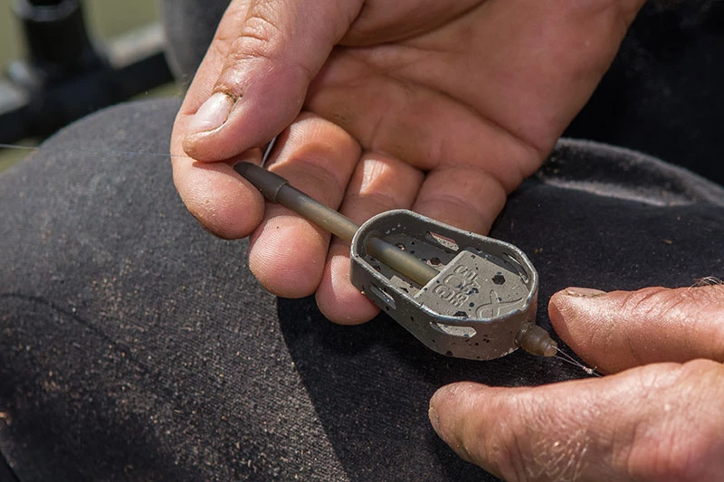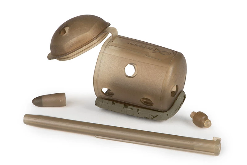 With a hexagonal unobtrusive dull brown durable plastic design with an easy to fill cap sealing in the contents. A bottom mounted weight designed to prevent rolling out of position when settling on the cast. Coming complete with a stem to thread and mount onto your mainline, or you can swap out and use an elasticated stem instead!