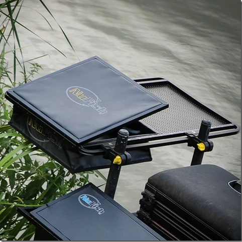 - A uniquely versatile design giving half sheltered and half uncovered options in one. Featuring a covered PVC twin coated nylon lidded section, to keep baits and tackle protected from the elements. The other side is flat and perforated to keep the weight down. Designed to fit securely to most common seatbox leg systems, there’s also a handy ruler running along the length. Great for adjusting your rigs with pinpoint accuracy.