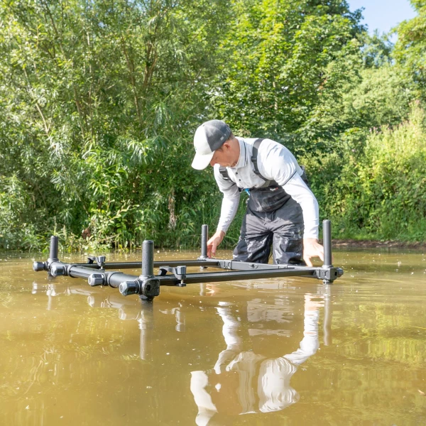 Super stable and simple to use, the Absolute platform gives you everything you want in a reliable platform. Adjustable to fit most seatboxes on the market. Manufactured with clever design additions like threaded end caps on all four legs, so you can screw in any standard threaded accessories. Plus twin spirtit levels that take the guesswork from getting truly stable. The entire frame also has strategic holes drilled to allow water in when you’re setting up, and drain again easily once you’re done.  Â