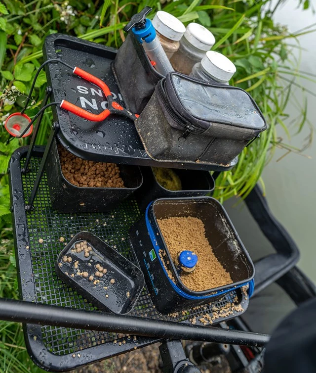 - A really clever idea for maximising space by adding a high rise second level! The larger lower section is manufactured from ultra lightweight perforated ventalite material whilst the upper tier is solid aluminium. So perfect for keeping smaller tackle items like loose shot, bait bands etc to hand. The lower section can house several bait boxes at once on the smaller sized system and four plus on the larger design.