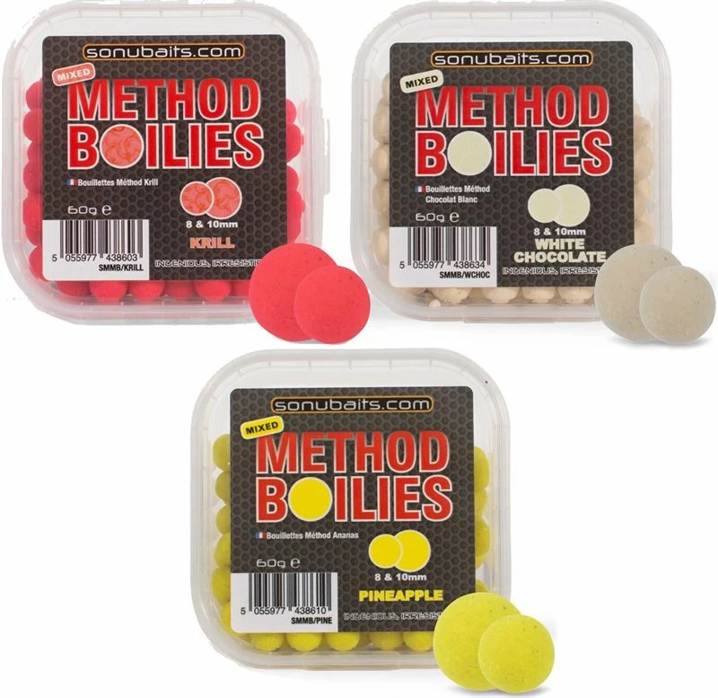 - Mixed Method Boilies are the perfect hookbait for Method Feeder Fishing. Their durable structure makes them perfect for hair rigging or using with a bayonet. Because of their durability they are also ideal for use on the straight lead or bagging waggler. Their strong fluoro colours make them the perfect hookbait which feeding fish pick out.